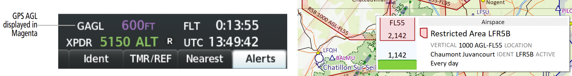Once again, the caveats in the previous section apply about accuracy and reliability. However, it’s a useful aid in negotiating certain types of airspace (particularly in France) that follow ground terrain. These are typically military danger or restricted areas with their vertical extents (both lower and/or upper) defined as "above ground level".