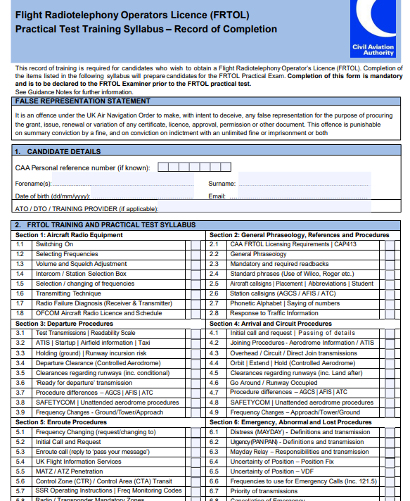 Here at Easy PPL Ground School, we have in-house CAA authorised FRTOL / RT Examiners who are able to carry out the radio practical exam that is required to gain initial issue of a pilot's license.